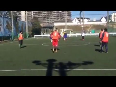 ・43" 赤ビブスチームに紛れて一部赤を着たカワシのずるゴール。